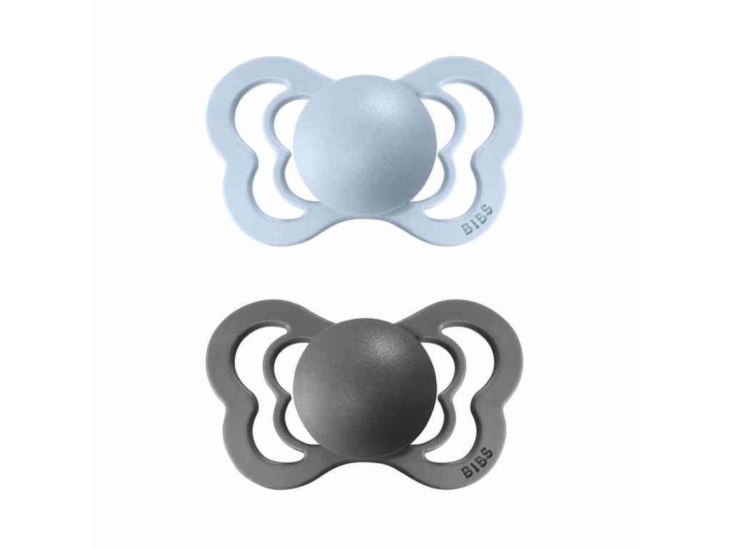 BIBS Couture anatomické cumlíky z prírodného kaučuku 2ks - veľkosť 1 - Iron / Baby Blue