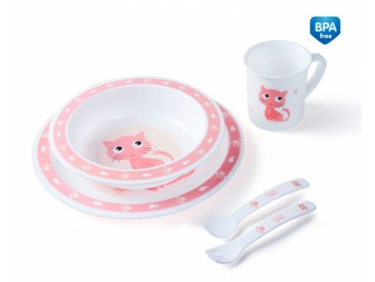 CANPOL 4/401 Plastikowy zestaw stołowy Cute Animals kotek różowy