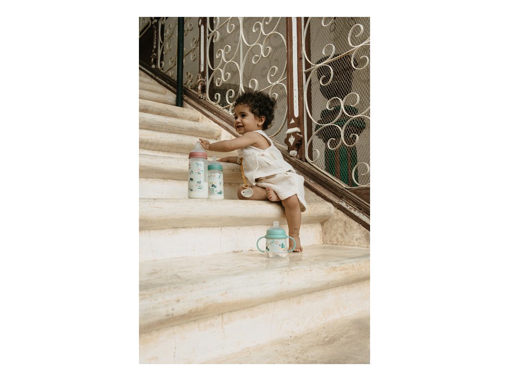 Druhá fľaša s uškami so špeciálnym SX ProTM antikolikovým cumlíkom uľahčuje prechod z dojčenskej fľaše na pitie z hrnčeka či pohára. Silikónový náustok je mäkké a materiálovo zhodné s cumlíky dojčenských fliaš a cumlíkov SX ProTM . Preto ho Vaše deti prijmú rýchlejšie ako bežný tvrdý náustok.