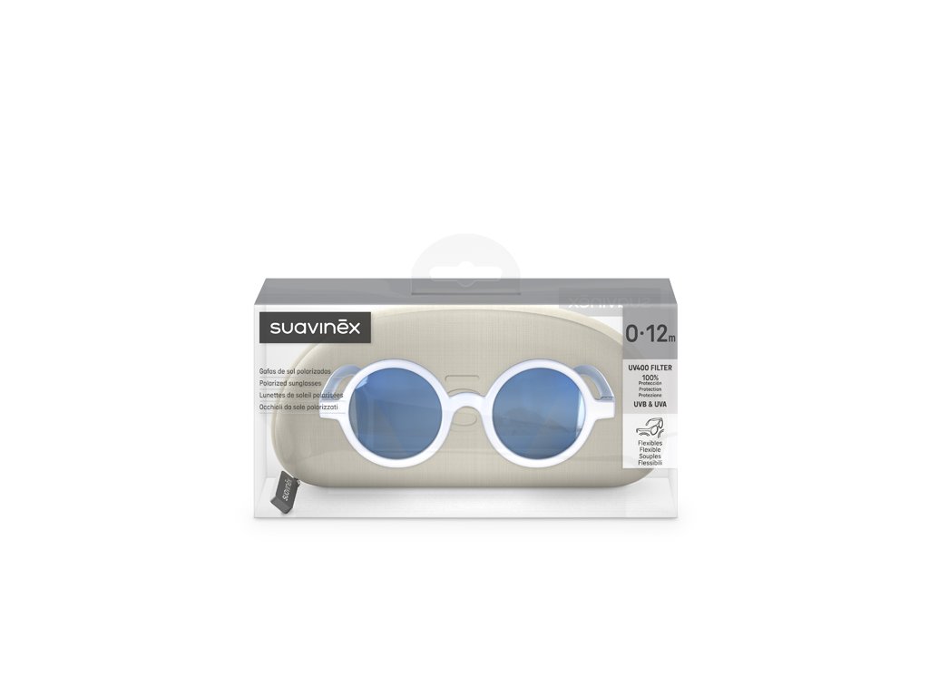 SUAVINEX | Detské okuliare 0/12 m polarizované s puzdrom 2024 - modré guľaté